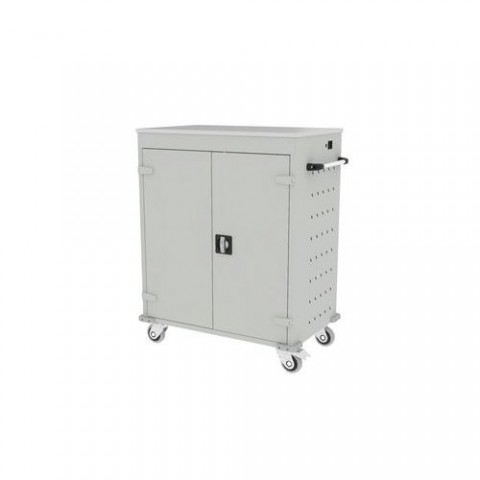 Mobilní svařovaná kovová skříň s 16 přihrádkami pro bezpečné uložení a napájení notebooků. Pro zajištění odvětrávání jsou boční stěny perforovány. Skříň z ocelového plechu tloušťky 0,8 mm. Maximální velikost notebooku 90 x 340 x 470 mm. Nabíjení lze zapnout pomocí centrálního vypínače. Mobilní skříň má dvě pevná a dvě otočná kola s brzdou. Zásuvky ve standardu E vhodné pro klienty z CZ, SK a PL.Mobilní skříň s napájením na notebooky, 16 přihrádek, šedá/šedá