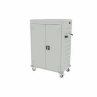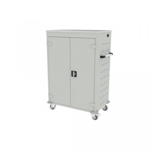 Mobilní svařovaná kovová skříň s 20 přihrádkami pro bezpečné uložení a napájení notebooků. Pro zajištění odvětrávání jsou boční stěny perforovány. Skříň z ocelového plechu tloušťky 0,8 mm. Maximální velikost notebooku 90 x 340 x 470 mm. Nabíjení lze zapnout pomocí centrálního vypínače. Mobilní skříň má dvě pevná a dvě otočná kola s brzdou. Zásuvky ve standardu E vhodné pro klienty z CZ, SK a PL.Mobilní skříň s napájením na notebooky, 20 přihrádek, šedá/šedá
