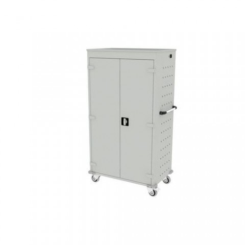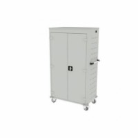 Mobilní svařovaná kovová skříň s 26 přihrádkami pro bezpečné uložení a napájení notebooků. Pro zajištění odvětrávání jsou boční stěny perforovány. Skříň z ocelového plechu tloušťky 0,8 mm. Maximální velikost notebooku 90 x 340 x 470 mm. Nabíjení lze zapnout pomocí centrálního vypínače. Mobilní skříň má dvě pevná a dvě otočná kola s brzdou. Zásuvky ve standardu E vhodné pro klienty z CZ, SK a PL.Mobilní skříň s napájením na notebooky, 26 přihrádek, šedá/šedá