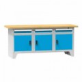 Standardní výbava korpusu stolu obsahuje mechanismus centrálního zamykání zásuvek v každém modulu. Pracovní stoly nabízíme v předdefinovaných sestavách pro každý typ v několika šířkách i hloubkách. Modulární stoly se sestavují z jednotlivých modulů, které se opět systémově vybavují řadou zásuvkových skříní, dvířek, dělení. Standardní výbava korpusu stolu Modular obsahuje mechanismus centrálního zamykání zásuvek v každém modulu.Modulární dílenské stoly PS1-3M, 1500 x 700 x 880 mm, MULTIPLEX