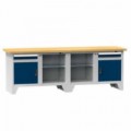 Standardní výbava korpusu stolu obsahuje mechanismus centrálního zamykání zásuvek v každém modulu. Pracovní stoly nabízíme v předdefinovaných sestavách pro každý typ v několika šířkách i hloubkách.Modulární dílenské stoly PS2-5, 2000 x 700 x 880 mm, BUK