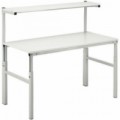 Víceúčelové antistatické pracovní stoly TPH s nastavitelnou výškou pracovní plochy a možností rozšíření o široké příslušenství. Modulární systém umožňuje poskládat sestavu stolů a vybavit příslušenstvím pro optimalizaci pracovního procesu. Pracovní deska vyrobená z laminované dřevotřísky tl. 25 mm. Odkládací laminovaná police pro ukládání materiálu a pracovního nářadí. Výška pracovní plochy se nastavuje manuálně. Ocelové části lakovány práškově.Antistatické dílenské stoly Treston TPH s policí, 65 - 90 x 150 x 70 - 90 cm