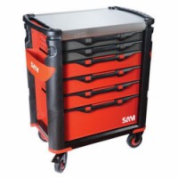 Servisní vozík se sadou nářadí 135 ks. Integrovaná rukojeť a pracovní plocha z nerezové oceli. Anti-tilt bezpečnostní systém blokace proti otevření více zásuvek najednou. Čtyři otočná kola 125 mm včetně jednoho brzděného. 100% výsuv zásuvek.Montážní vozík SAM s nářadím, 81,7 x 67,8 x 45,9 cm