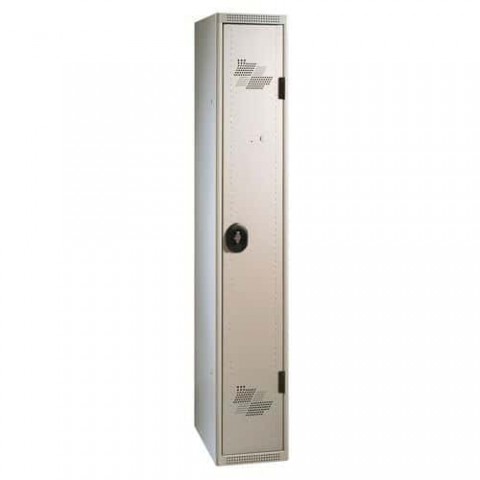 Montovaná šatní skříň z odolného profilovaného ocelového plechu o tloušťce 0,6 mm (odpovídá 0,8 mm standardnímu). Odolná dvířka se otevírají až do úhlu 120°. Možnost umístění štítku se jménem. Uzamykání na visací zámek (není součástí dodávky, doporučený průměr třmenu 6 až 7 mm).Montované šatní skříně Acial, 1 oddíl, 300 mm, otočný uzávěr