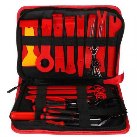 Velký výběr nástrojů a pomůcek Mnohostranné využití Vysocekvalitní a odolný materiál Snadné použití i pro začátečníky Včetně pouzdra se zipem Interiér a exteriér automobilu Pouzdro na zip Materiál: ocel, plast Rozměry: 31,5 x 23,5 x 5 cm Hmotnost: 1,05 kgMultifunkční sada k demontáži čalounění a interiéru MECHANIC TRIM SET 38, 38ks SIXTOL