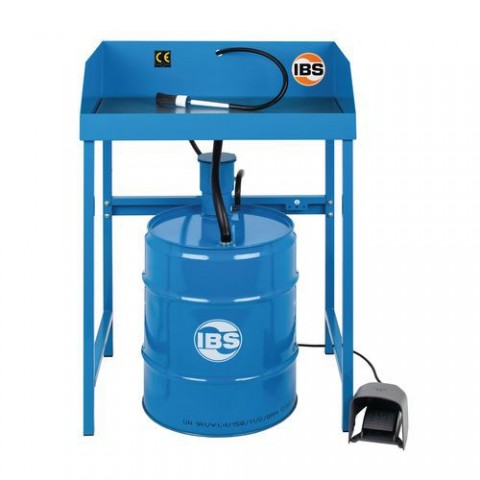 Čisticí stůl pro průmyslové mytí drobných dílů a součástek od olejů, vazelín a k odmašťování před povrchovou úpravou. Sešlápnutím nožního spínače se čerpadlo uvede do provozu a během mytí znečištěných dílů stéká použitá kapalina zpátky do sudu, kde se špína samostatně odděluje a usazuje na dně sudu. Hrdlo čerpadla sahá pouze do poloviny sudu, což zaručuje práci pouze s čistou kapalinou. Použití je možné pouze s mycími kapalinami a záchytnými vanami IBS, které je nutné dokoupit zvlášť. Respektuje zákony a směrnice EU.Mycí stůl IBS, typ BK 50