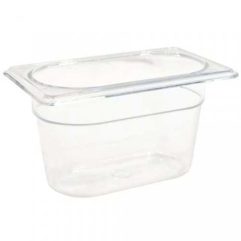Gastronorm® nádoby na studené potraviny jsou vyrobeny z polykarbonátu a odolávaj?? teplotám od -40 °C do +100 °C. Na jejich hladkém povrchu se nezadržují potraviny a snadno se čistí. Pružná víka omezují úniky a pomáhají udržet potraviny čerstvé (-29 °C až +65 °C). Profesionální nádoby a víka lze mýt v myčce nádobí a mikrovlnné troubě. Nepoužívejte v troubách.Nádoba na potraviny Gastronorm 1/9 –_Rubbermaid