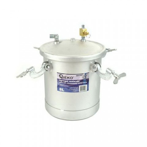 Objemná nádrž o kapacitě 8 litrů určená na malování vybavená hadicí a pistolí. Sada obsahuje: Atestovaná nádrž o kapacitě 8 l vybavená regulátorem obousměrného vzduchu pro regulaci tlaku uvnitř nádrže, pojistným ventilem, sací hlavicí s 3/8 "konektorem pro připojení hadici k pistoly, odvzdušňovací ventil, rukojeť. Set hadic (3 metry) pro připojení pistole s nádrží. Stříkací pistole HP s tryskou 2,0 mm Použití: Téměř všechny barvy a laky - stříkání bez ředění, tlustá vrstva Emulze Antikorozní nátěry, protipožární nátěry Postřik na plochyNádrž na malování + hadice + pistole, 8l GEKO
