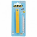 Deset náhradních čepelí SAB-10B. Lámací čepel s velmi ostrým řezným zkosením.Náhradní čepele pro bezpečnostní nože Olfa, pro grafický model, průměr čepele 9 mm, 10 ks