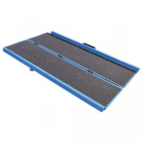 Skládací nájezdové rampy pro vozíky, invalidní vozíky a další. Povrch je opatřen protiskluzovou vrstvou. Praktické skladování díky možnosti složení.Nájezdové můstky Gong, sklopné, do 450 kg