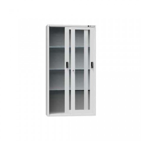Tyto skříně jsou vhodné především do prostor, kde není možné kvůli nedostatku místa instalovat skříně s křídlovými dveřmi. U obou typů skříní jsou pozinkované police stavitelné po 25 mm. Dílenská plechová skříň disponuje posuvnými skleněnými dveřmi s bezpečnostním tvrzeným sklem na kuličkových ložiscích. Skříně jsou zamykatelné originalním POLAK design zámkem s rozpěrným mechanismem. Pozinkované police jsou stavitelné po 25 mm.Nářaďové skříně SP1-001S, 1044 x 405 x 1950 mm