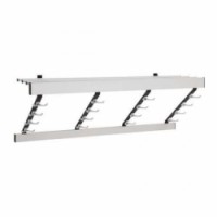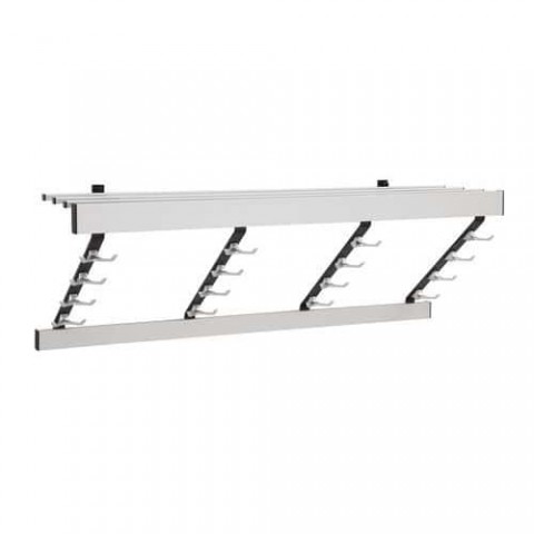 Věšák se 16-ti dvojitými háčky z eloxovaného hliníku a poličkou.Nástěnný věšák Gardelux