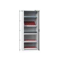 NC skříně jsou opatřeny dvojitými stěnami s perforací pro zavěšení polic, nosičů, nástrojových rámů a zásuvek. V případě vybavení skříne zásuvkami je standardně, z důvodu bezpečnosti (nebezpečí převrácení), dodávána blokace proti vysunutí více zásuvek. Korpus skříně se uzavírá křídlovými dveřmi s panty otočnými o 180°. Zamykání cylindrickým rozvorovým zámkem. Standardní výbavou je systém identifikace otvorů a popisový štítek s funkcí chytrý nábytek. Do skříní je možné zavěšovat zásuvky s půdorysem ZD (36x27).NC skříně s křídlovými dveřmi 36x27D s vybavením, var. 8