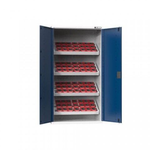 NC skříně jsou opatřeny dvojitými stěnami s perforací pro zavěšení polic, nosičů, nástrojových rámů a zásuvek. V případě vybavení skříne zásuvkami je standardně, z důvodu bezpečnosti (nebezpečí převrácení), dodávána blokace proti vysunutí více zásuvek. Korpus skříně se uzavírá křídlovými dveřmi s panty otočnými o 180°. Zamykání cylindrickým rozvorovým zámkem. Standardní výbavou je systém identifikace otvorů a popisový štítek s funkcí chytrý nábytek. Do skříní je možné zavěšovat zásuvky s půdorysem ZC (54x27).NC skříně s křídlovými dveřmi 54x27D s vybavením, var. 1