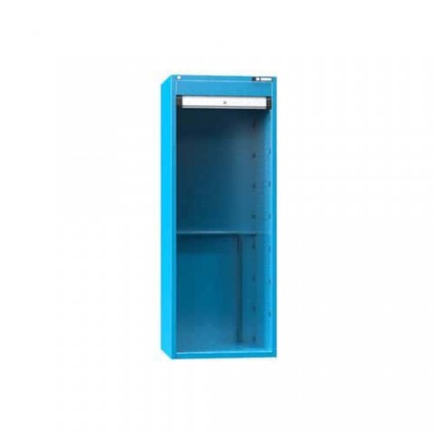 NC skříně jsou opatřeny dvojitými stěnami s perforací pro zavěšení polic, nosičů, nástrojových rámů a zásuvek. V případě vybavení skříne zásuvkami je standardně, z důvodu bezpečnosti (nebezpečí převrácení), dodávána blokace proti vysunutí více zásuvek. Korpus skříně se uzavírá hliníkovou roletou světle šedé barvy RAL 7035 s rozvorovým zámkem. Standardní výbavou je systém identifikace otvorů a popisový štítek s funkcí chytrý nábytek. Do skříní je možné zavěšovat zásuvky s půdorysem ZD (36x27).NC skříně s roletou, 36x27D bez vybavení