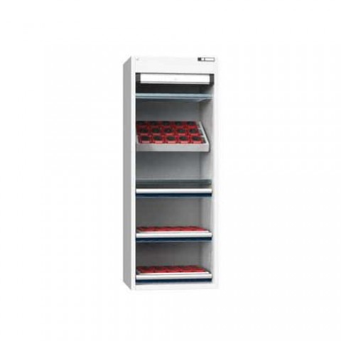 NC skříně jsou opatřeny dvojitými stěnami s perforací pro zavěšení polic, nosičů, nástrojových rámů a zásuvek. V případě vybavení skříne zásuvkami je standardně, z důvodu bezpečnosti (nebezpečí převrácení), dodávána blokace proti vysunutí více zásuvek. Korpus skříně se uzavírá hliníkovou roletou světle šedé barvy RAL 7035 s rozvorovým zámkem. Standardní výbavou je systém identifikace otvorů a popisový štítek s funkcí chytrý nábytek. Do skříní je možné zavěšovat zásuvky s půdorysem ZD (36x27).NC skříně s roletou 36x27D s vybavením, var. 8