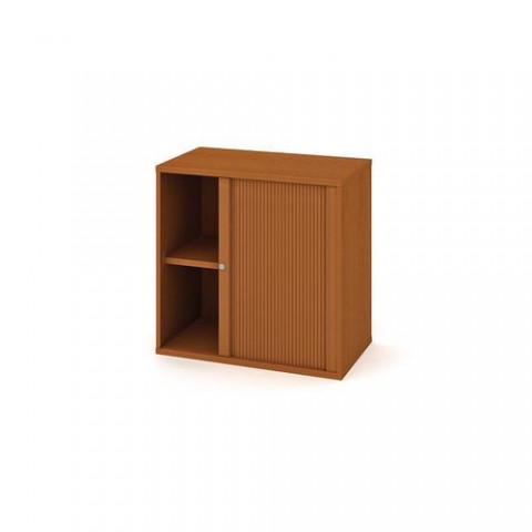 Široká skříň ve třech barevných variantách s výškově stavitelnou policí. Uzamykatelná roleta s otevíráním doprava. Osazení ABS hranami. dezén: buk, ořech, třešeň rozměry v x š x h: 76,8 x 80 x 40 cm materiál: laminovaná dřevotříska počet polic: 1 nosnost police: 80 kg zámek: ano provedení: s roletou - pravé provedení ABS hrany (2 mm čelní strana, 1 mm ostatní hrany), desky tloušťky 18 mm (boky), 8 mm (zadní strana) a 25 mm (police, horní a spodní deska), dodáváno v demontovaném stavu (spojovací materiál součástí balení)Nízké široké skříně Strong, 76,8 x 80 x 40 cm, s roletou - pravé provedení