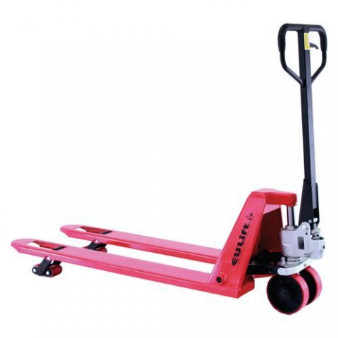 Vozík na palety se sníženou minimální výškou vidlic, kterou využijete při manipulaci s nestandardními paletami. Vidlicová kola jsou v tandemovém provedení. nosnost: 1 500 kg délka vidlic: 115 cm šířka vidlic: 16 cm vnější šířka vidlic: 54 cm maximální výška zdvihu: 16 cm minimální výška zdvihu: 5,1 cm počet kol ve vidlicích: tandem materiál kol: řídící polyuretan; vidlicová polyuretan průměr kol: řídící 180 mm; vidlicová 50 mm ložiska: valivá (kuličková) rozměry d x š x v: 164 x 58 x 125 cm materiál: ocel barva: červená hmotnost: 76 kgNízkoprofilový paletový vozík BFL15, do 1 500 kg, s polyuretanovými koly