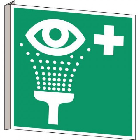 Extrémně odolné díky vysoce kvalitnímu materiálu. Žádná ztráta barvy v důsledku ošetření proti UV záření. Odolnost vůči extrémním teplotám.Nouzové evakuační značky – „Stanice pro výplach očí“ – PVC