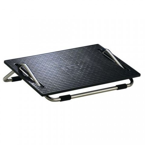 Výkyvná opěrka pod nohy nastavitelná tlakem nohou. Protiskluzová plocha z černého plastu. Chromovaná kovová konstrukce s gumovými patkami. Úhel sklonu je 50 - 110 stupňů. Rozměry opěrné plochy jsou 47,5 x 30 cm a hmotnost 1,6 kg.Nožní opěrka Wedo Ergoswing