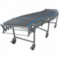 Nůžkový dopravník s plastovými válečky je vhodný pro zhotovení přímých a zatáčkovitých tratí, spádových i rovinných. Sklon je možné seřídit pomocí výškově stavitelných noh. Bez nutnosti postranního vedení. nosnost: 70 kg (mezi 2 nohami) pracovní šířka: 500 mm celková šířka dopravníku: 620 mm délka dopravníku: 1 700 - 4 240 mm výška dopravníku: 665 - 1 000 mm počet os: 32 počet válečků na ose: 2 průměr válečků: 50 mm materiál válečků: polyvinylchlorid materiál konstrukce: pozinkovaná ocel ložiska: valivá (kuličková) počet noh: 3 barva: tmavě šedá brzděná kola, možnost tvarovat do zatáček až do 180°, ložisko je uloženo v distančním kroužku z nylonuNůžkový dopravník s plastovými válečky, šířka 500 mm, 32 os