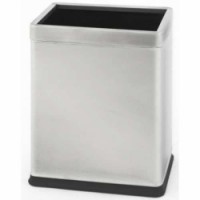 Obdélníkový dvoustěnný odpadkový koš. Vnější strana je z matné nerezové oceli. Vnitřní strana je z černé práškově lakované oceli.Obdélníkový dvoustěnný odpadkový koš z nerezové oceli 10 l – V-Part