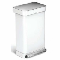 Elegantní pedálový koš na kosmetiku z nerezové oceli s dávkovačem vložek Liner Pocket, díky němuž jsou sáčky do koše vždy po ruce a jejich výměna je tak snadná. Široký okraj upíná sáček, aby zůstal na svém místě a nebyl vidět. Také je vybaven extra širokým ocelovým pedálem a tichým zavíráním víka.Obdélníkový odpadkový koš s nožním pedálem 45 l s kapsou na vložku z nerezové oceli_Simplehuman