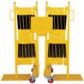 Sada výsuvných zábran pro dočasné zablokování a zajištění přístupu na široké plochy. Středový upevňovací prvek nejen spojuje obě zábrany, ale lze jej použít i k zobrazení informačního listu formátu A4. Robustní a stabilní: zábrany na kolečkách s brzdami pro bezpečné a snadné používání.Kovové mobilní zábrany Dancop, skládací