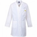 Antistatický pracovní oděv pro ESD pracovní prostředí. Bezpečný oděv skrytá přední část dvě spodní kapsy jedna kapsa na hrudi a nastavitelné manžety. CE certifikace ESD Kapsa na mobilní telefon UPF 50+ Nastavitelné manžety na suchý zip 3 kapsyESD antistatický plášť, bílá