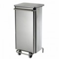 Nerezový odpadkový koš se sklopným víkem. Víko lze jednoduše otevírat nožním pedálem v souladu s HACCP. Vhodné použití v kombinaci s pytlem na odpadky. Koš je opatřený madlem a dvěma gumovými kolečky pro jednoduchou manévrovatelnost.Kovové odpadkové koše Manutan Expert s víkem, objem 110 l