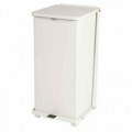 Samozhášecí odpadkový koš Rubbermaid z pozinkované oceli, nalakován práškovou barvou. Systém pro tiché zavírání a uchycení pytlů na odpadky. Vhodný do zdravotnických zařízení, kuchyní apod.Kovový hygienický samozhášecí odpadkový koš Rubbermaid Defender, objem 100 l