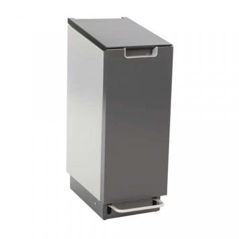 Protipožární recyklační modul z vysoce kvalitního hliníku, vybavený robustním širokým nášlapným pedálem, splňuje normy HACCP. Šikmé víko zabraňuje odkládání předmětů. Víko se zavírá tiše díky systému Soft Closing. Stabilní dvířka a držák sáčků s kolejnicovým systémem zajišťují ergonomickou výměnu sáčků. Dvě malá kolečka v zadní části slouží zároveň jako distanční prvky. Spojovací koše lze umístit samostatně nebo v sérii jejich vzájemným spojením pomocí spojovací sady (volitelně). Jako volitelné příslušenství je k dispozici recyklační sada (pro vystavení různých druhů odpadu) včetně barevného držadla a štítku.Odpadkový koš Connector Bin Kick_Vepabins