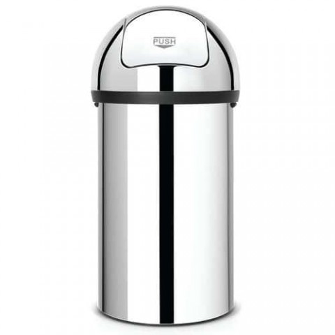Velký koš z nerezové oceli a plastu, otevírání push s tlumením pro tiché zavírání. Sáček je integrovaný a snadno se vkládá. Velký otvor usnadňuje vyhazování odpadu. Dno má plastový okraj chránící před poškrábáním.Odpadkový koš Push Bin – Brabantia