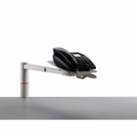 Šedý stojan pro připevnění k desce stolu. S otočným výsuvným ramenem z hliníku a odkládací deskou skloněnou směrem k uživateli. Využitelný jako držák na telefon a v kombinaci s rozšiřujícími prvky i na fax nebo notebook. nosnost 2 kg výška: 22 cm rozměry odkládací desky: 26 x 17 cm délka ramene: 39 - 53 cm systém uchycení: k desce stolu vedení kabelu telefonu uvnitř nosného rameneOtočný držák telefonu s teleskopickým ramenem