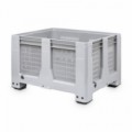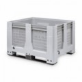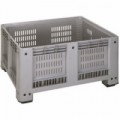 Plastový box s odvětrávanými bočními stěnami a podstavcem. Navrženo pro dokonalou mrazuvzdornost. Maximální nosnost 3 500 kg při stohování. Paletový box, který zajišťuje vynikající stabilitu.Paletový kontejner, perforované stěny, 430 l