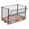 Skládací paletové nástavce jsou vhodné pro přepravu a uskladnění zboží na Euro paletách. Poskytují maximální využití úložné plochy palety. Přední stěna je z jedné poloviny sklopná pro snazší přístup k uloženému materiálu.Paletové nástavce se sklopnou stěnou typ 64, pletivové