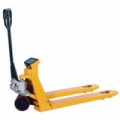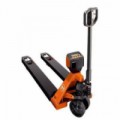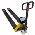 Paletový vozík s váhou slouží k přepravě zboží na paletách a jeho vážení. Vozík je vybaven ergonomickým madlem. Součástí je baterie 6V, 4Ah. Váha disponuje funkcemi Tara, Gross a Netto a zobrazuje váhu po 1 kg s přesností 0,05%.Paletový vozík s váhou, do 2300 kg, polyuretanová řídicí kola