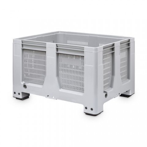 Plastový paletový kontejner na čtyřech nohách. Neustálý přístup vzduchu ke zboží díky perforovaným stěnám i dnu. Vyroben z vysokohustotního polyetylenu. Vyšší bezpečnost a snadnou omyvatelnost zajišťují zaoblené hrany a okraje. Kontejner lze doplnit víkem.Paletový kontejner MaxiLog s perforovanými stěnami, 610 l