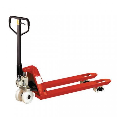 Paletový vozík vhodný k přepravě břemen v průmyslových provozech, skladech apod. Vysoká nosnost, zpevněný rám. Tandemová kola ve vidlicích. Paletový vozík používejte pouze na pevné a rovném povrchu.Paletový vozík, do 2500 kg, nylonová řídicí kola