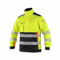 Žlutočerná výstražná montérková blůza s oranžovými doplňky. Relfexní pruhy jsou tvořeny z malých reflexních segmentů. Zesílená ramena materiálem CORDURA. Levá náprsní kapsa na zip, pravá kapsa krytá klopu, boční kapsy na zip, levý rukáv s kapsičkou na tužky. Kryté zapnínání na zip a rukávy do manžety se zapínáním na suchý zip. Vhodné pro stavebnictví, silničáře, údržbu, logistiku, leteckou a lodní dopravu.Pánská montérková reflexní blůza CXS Benson, žlutá/černá