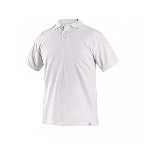 Pánské bavlněné tričko s límečkem a krátkým rukávem. Polokošile má tři knoflíky v barvě polokošile, postranní švy, rovný spodní okraj s bočními prostřihy a zpevňující pásku na límci. Dvojité žebrování na okraji límce a manžetách rukávů. Silikonová úprava zajišťuje vyšší měkkost, pružnost, rozměrovou stálost a zamezuje tvorbě žmolků. Materiál 100% bavlněný úplet piké double lacoste.Pánská polokošile s krátkým rukávem CXS, bílá