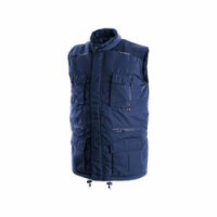 Modrá zateplená pracovní vesta s rameny a límcem prošité manšestrem. Vesta má 14 kapes, z toho tři vnitřní. Možnost stažení vesty v pase.Pánská zimní vesta CXS Ohio, modrá