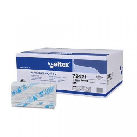 Dvouvrstvé papírové ručníky CELTEX 21,5x22cm, skládané,bílo zelené z recyklu, ideální poměr mezi cenou a kvalitou.Papírové ručníky skládané Celtex V Eco Trend 2vrstvy bílo/zelené, 3150ks