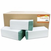 Skládané papírové ručníky ze 100% recyklovaného papíru. Jedno balení obsahuje 250 ks utěrek. Prodej po balení 20 ks.Papírové ručníky ZZ Green Standard 1vrstvé, 250 útržků, zelené, 20 ks