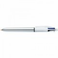 Multifunkční kuličkové pero s barevnými náplněmi - modrá, černá, červená a zelená. Stříbrná barva krytu dodává moderní kovový vzhled. Středně zúžený hrot pro hladké a úhledné psaní. Snadné zasunutí jediným stisknutím. Lze jej znovu naplnit novými náplněmi. S klipem pro připevnění na oblečení, kapsy nebo psací plochy.Kuličkové pero Bic, modré, 4 náplně