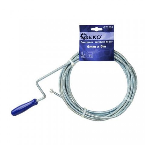 Neocenitelné protahovací pero vhodné pro odstranění přetížení vody a likvidace odpadních vod. Průměr drátu 6 mm, délka spirály 5 m. Z pozinkovaného pružinového drátu. Ergonomická rukojeť. Spirála dokončena dvojitým hákem.Pero na protahování odpadů, 6mm x 5 m, GEKO
