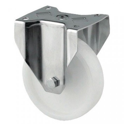 Maximální nosnost : 400 kg. Pro použití na rovných podlahách. Odolnost vůči chemikáliím. Vhodné pro potravinářský průmysl nebo laboratoře.Pevná kolečka s polyamidovou deskou a tělem z nerezové oceli – Nosnost 200 až 400 kg