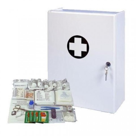 Plastová nástěnná lékárnička, uzamykatelná, 42 x 31 x 15 cm, s náplní KANCELÁŘ