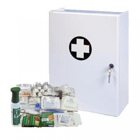 Plastová nástěnná lékárnička, uzamykatelná, 42 x 31 x 15 cm, s náplní SKLAD
