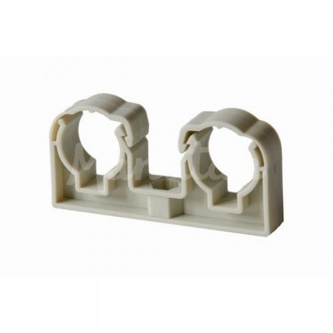 Plastové příchytky typ UNI se třmenem (pro průměry 20 mm a 25 mm) jsou vyráběny z polypropylenu (PP) a jsou přímo určeny pro upevnění plastového potrubí (PPR).Díky univerzálnímu centrálnímu otvoru je možno příchytky kotvit pomocí natloukacích či jiných hmoždinek nebo pomocí závitu M6.Třmeny příchytek zajišťují dokonalou fixaci trubky a zamezují vysunutí potrubí z příchytky.Příchytky lze například kotvit na omítnuté zdivo, betonové panely a jiné obkladové materiály. Odvětví: voda, plyn, topení, elektroinstalace Použití: plastové potrubí, elektrické kabelyPlastová příchytka na potrubí z PLASTU dvojitá šedá